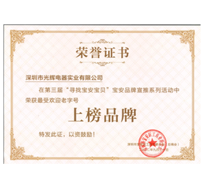 光輝電器榮獲“尋找寶安寶貝”最受歡迎老字號(hào)品牌
