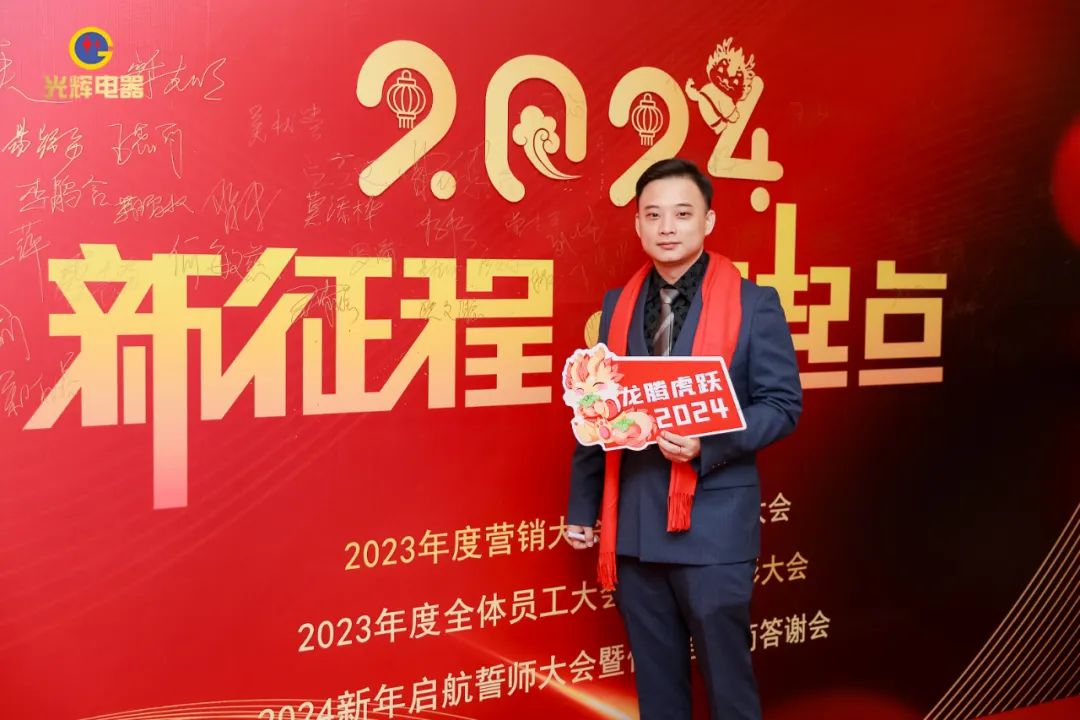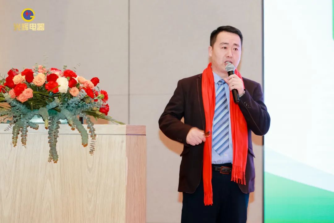 年會伊始,光輝公司董事長蔡宗光發(fā)表激情演講;執(zhí)行董事兼總經(jīng)理孫偉作2024年規(guī)劃;常務(wù)副總賀未作2023年工作總結(jié);他擲地有聲地向大家描繪了2024年全新藍圖;營銷中心總經(jīng)理沈文杰作2024年營銷中心工作部署。
